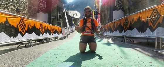 Foto de mi llegada a meta en el Andorra Ultra Trail Ronda dels Cims, tras 170km por montaña con 27.000 metros de desnivel acumulado.